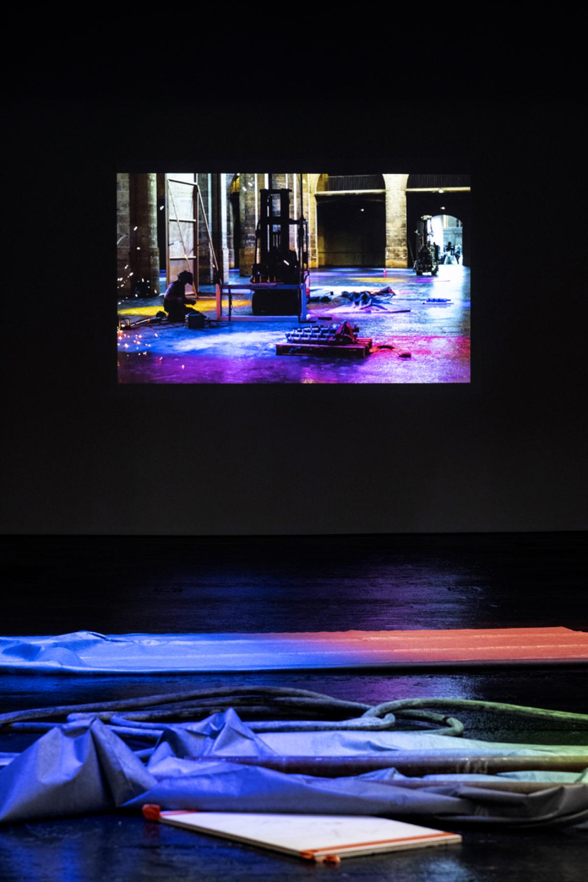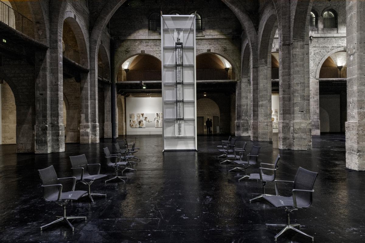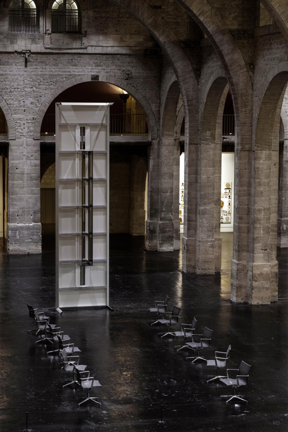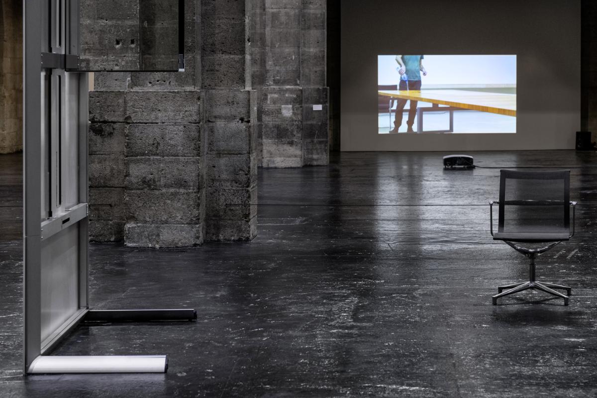 Comme pour mieux entériner la dichotomie inhérente à leur pratique, que d’aucuns ont qualifié – à la fois – d’éthérée et terrestre, fictionnelle et fonctionnelle, transcendante et immanente, ou encore métaphysique et politique, les artistes exploitent la division naturelle en deux nefs de l’architecture piranésienne de l’espace central du musée d’art contemporain de Bordeaux, s’ingéniant à défaire d’un côté ce qu’ils font de l’autre.