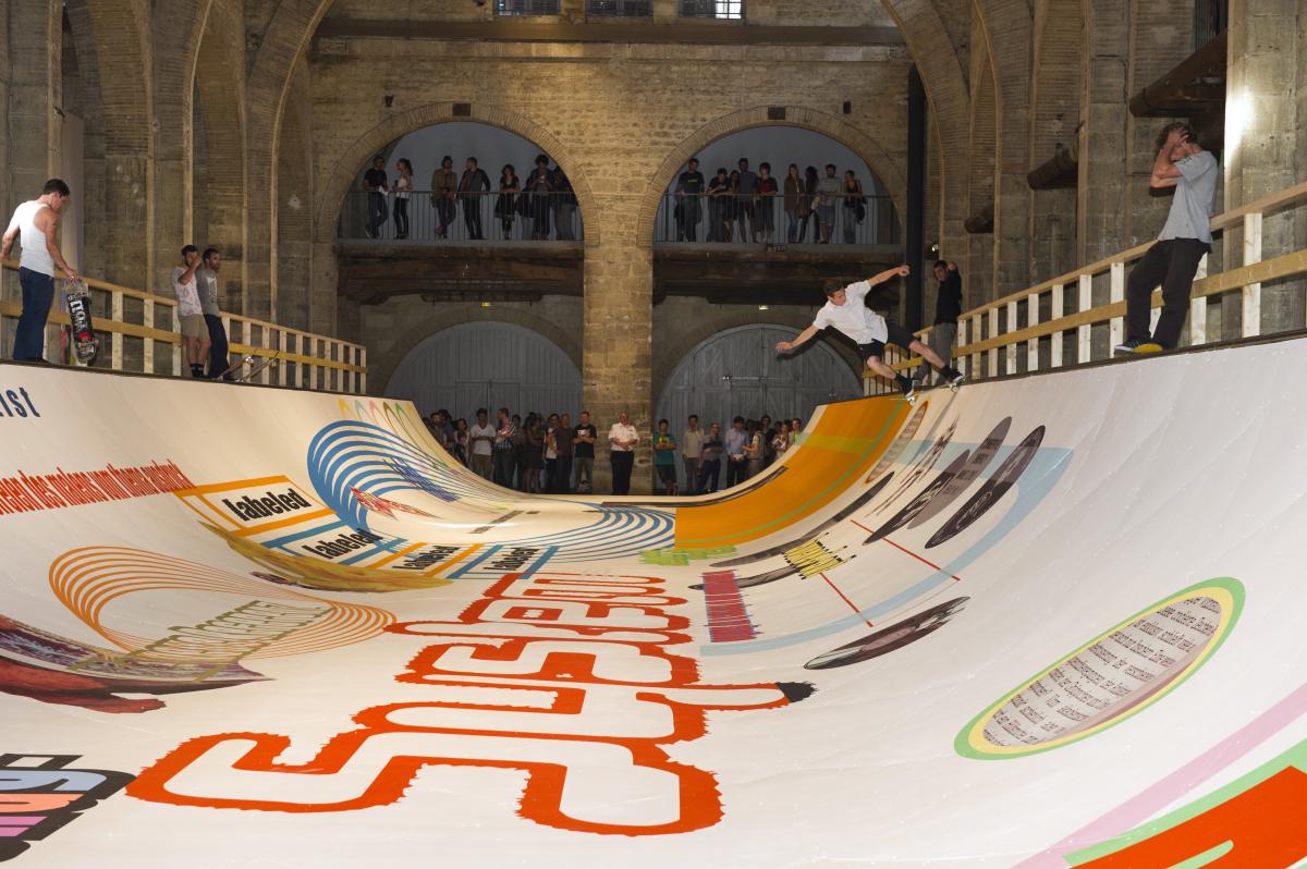 C’est pourquoi, dans le cadre de la saison estivale, le CAPC met à disposition d’associations à vocation sportive, culturelle ou sociale l’œuvre en forme de rampe de skateboard if you are dead, so it is. Le musée devient ainsi, le temps de sessions, un espace de rencontres entre les œuvres de Michel Majerus et les cultures urbaines vivantes : espace/temps de transmission, d’ateliers, de rencontres, de démonstrations, de lien social…
