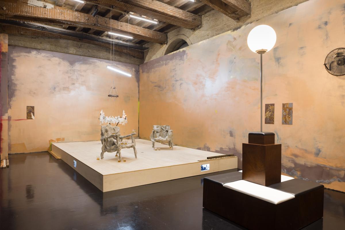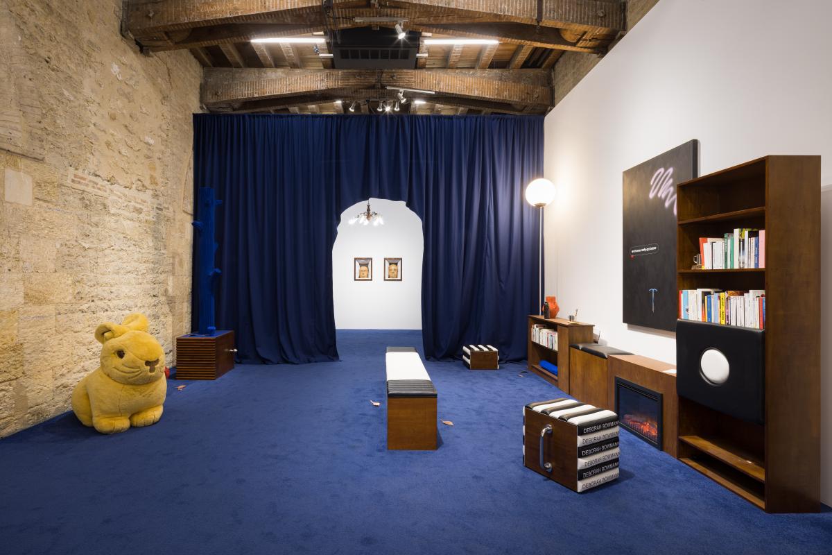 To create this club, Deborah Bowmann (Amaury Daurel & Victor Delestre), a duo of artists hailing from Bordeaux and recently installed in Brussels, was invited to design the scenography into four contiguous spaces – the Antechamber, the Lounge, the Smoking Room and the Stage. The sets serve as a backdrop for the work of 24 invited artists, and doubles as a reading, listening and conversation space for the members of the club – that is, for anyone who may enter.