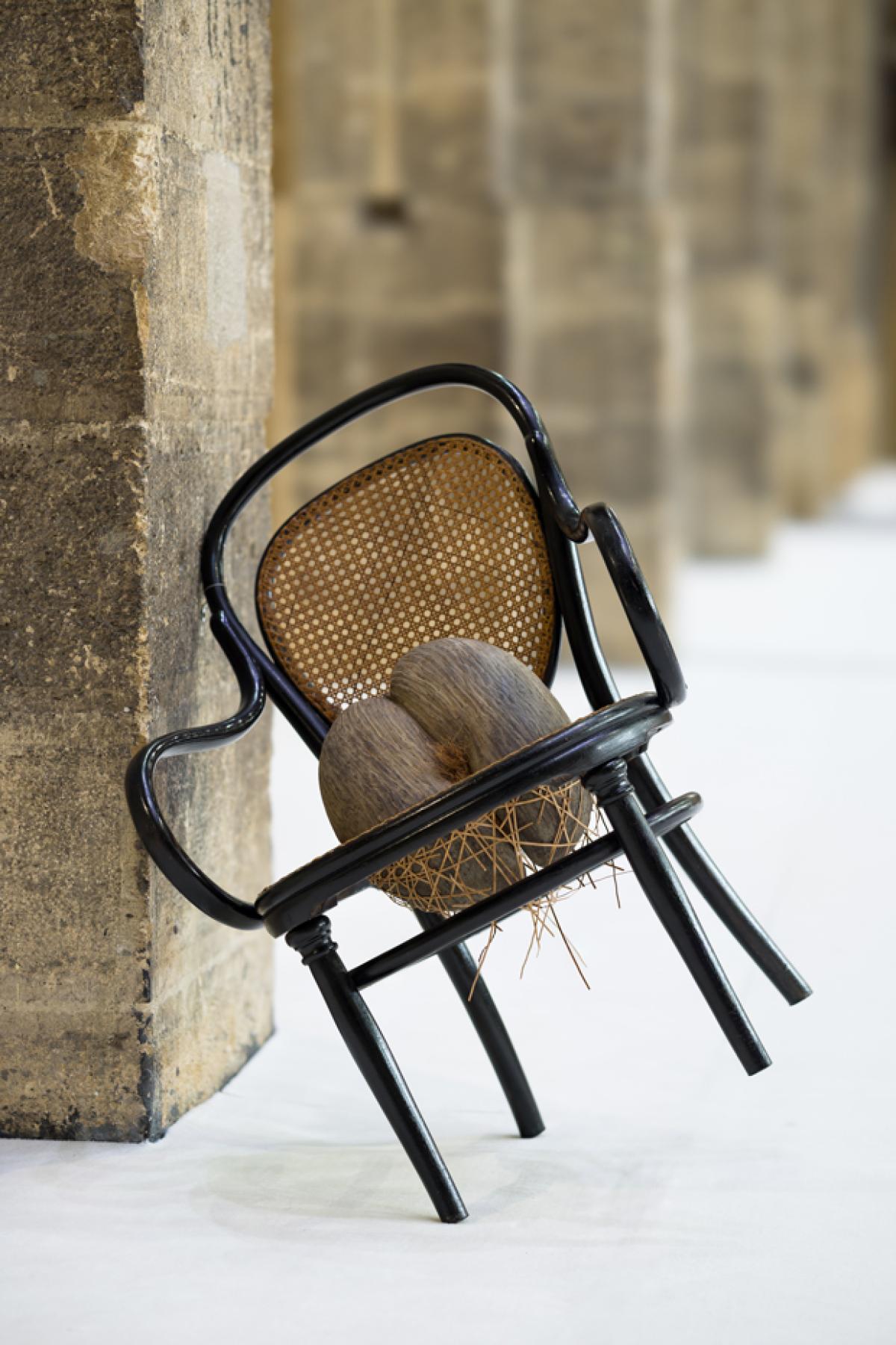 Gender and class relations, as well as colonial and social history feed all of Nina Beier's work. Using materials for their evocative powers - flirting with clichés, which she uses deliberately - we come across palm leaves, wigs, moustaches and Persian carpets.