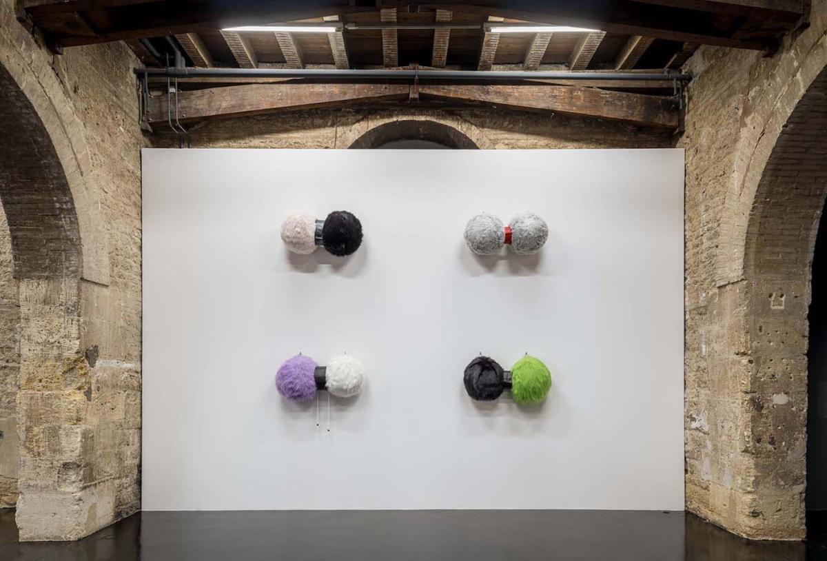 Beyond the screen, individual works by Camille Aleña and K. Desbouis unfold within the space: other videos, in the form of more or less staged encounters, and colourful sculptures resembling abstract soft toys. The artists’ shared obsessions emerge: fetishism, fanaticism, and the inversion of the traditional “subject–object” relationship, along with a strong fascination for “situations”—whether they be humorous, pathetic, unsettling, perverse, or ambivalent.