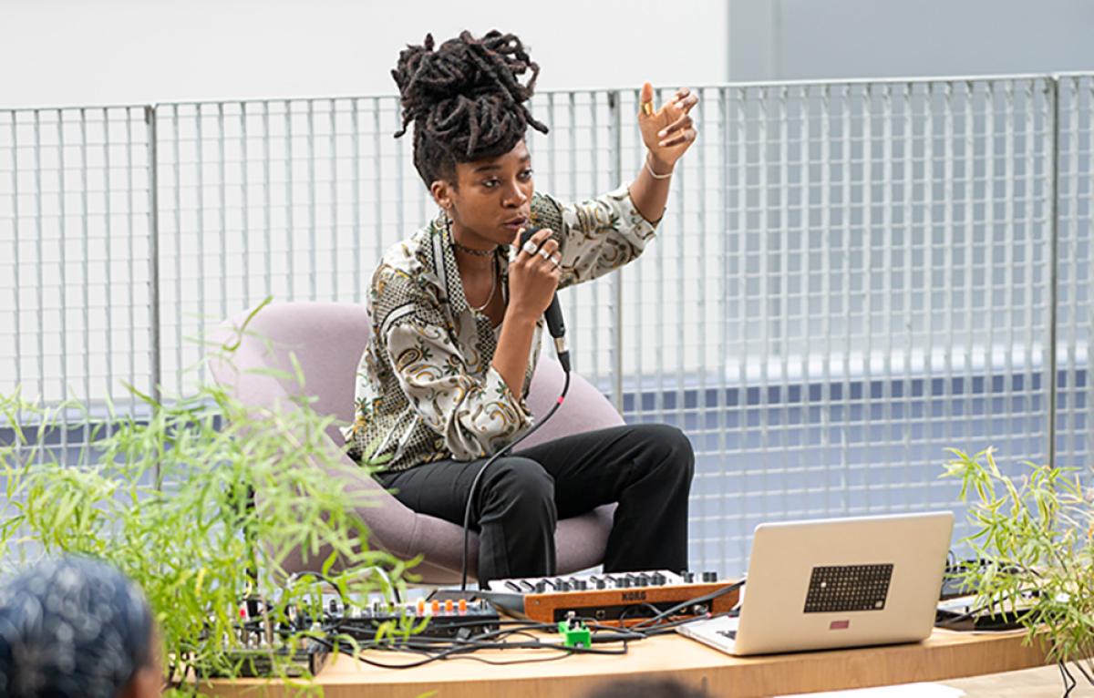 Diplômée du Post-Diplôme en Arts Sonores des Beaux-Arts de Lisbonne et du master de l'INA GRM (Groupe de Recherches Musicales), l’artiste Fallon Mayanja explore les alternatives de perception et construit des environnements d'écoute.