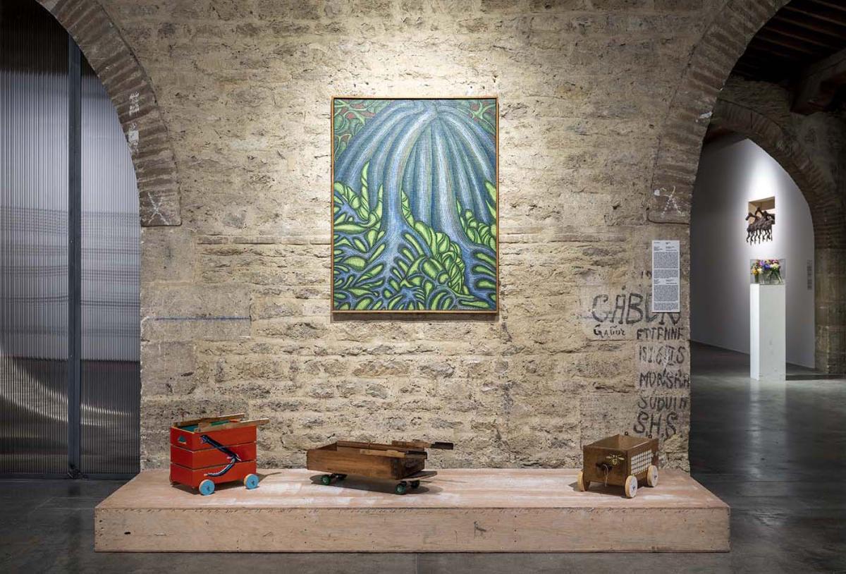 Pollen specifically highlights a significant number of recent acquisitions in the collection, featuring works by Chiara Camoni, Olivia Erlanger, Roy Köhnke, Kapwani Kiwanga, Nina Beier, Sébastien Vonier, Samara Scott, Julien Creuzet, Gina Pane, and Lubaina Himid. In addition to collection works, Pollen will also showcase artists who have “brushed against” Capc in some way. Over the two-year exhibition period, four artists will be featured in what could be called a “display within the display.” Works by each of these four artists will be exhibited for six months at a time, alternating to “pollinate” the collection’s artworks. The first of these artists is Emma Reyes.