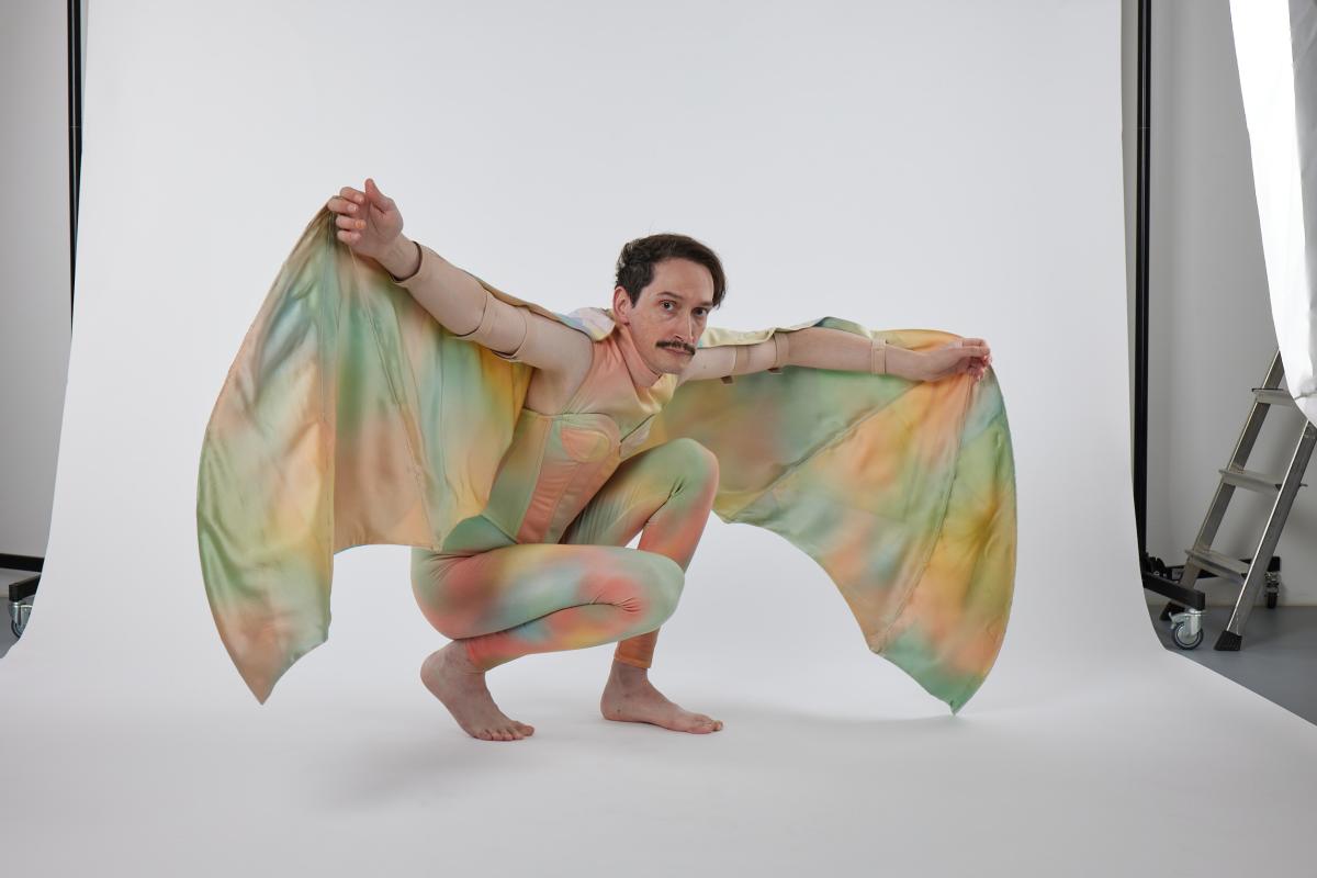 L’artiste suisse (né en 1997) déploie une performance en plusieurs chapitres à l’échelle de tout le musée (devant ses portes, sur les mezzanines et sur les terrasses). Mêlant textes, fumigènes, feux d’artifices et autres accessoires insolites et effets spéciaux, ses interventions tissent une narration autour d’une fête qui vire au cauchemar.